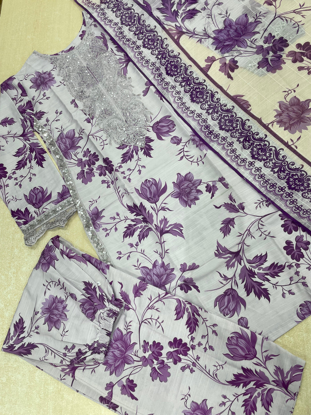 Tabeer – Purple Karma Collection inspired Lawn Suit - 3pcs