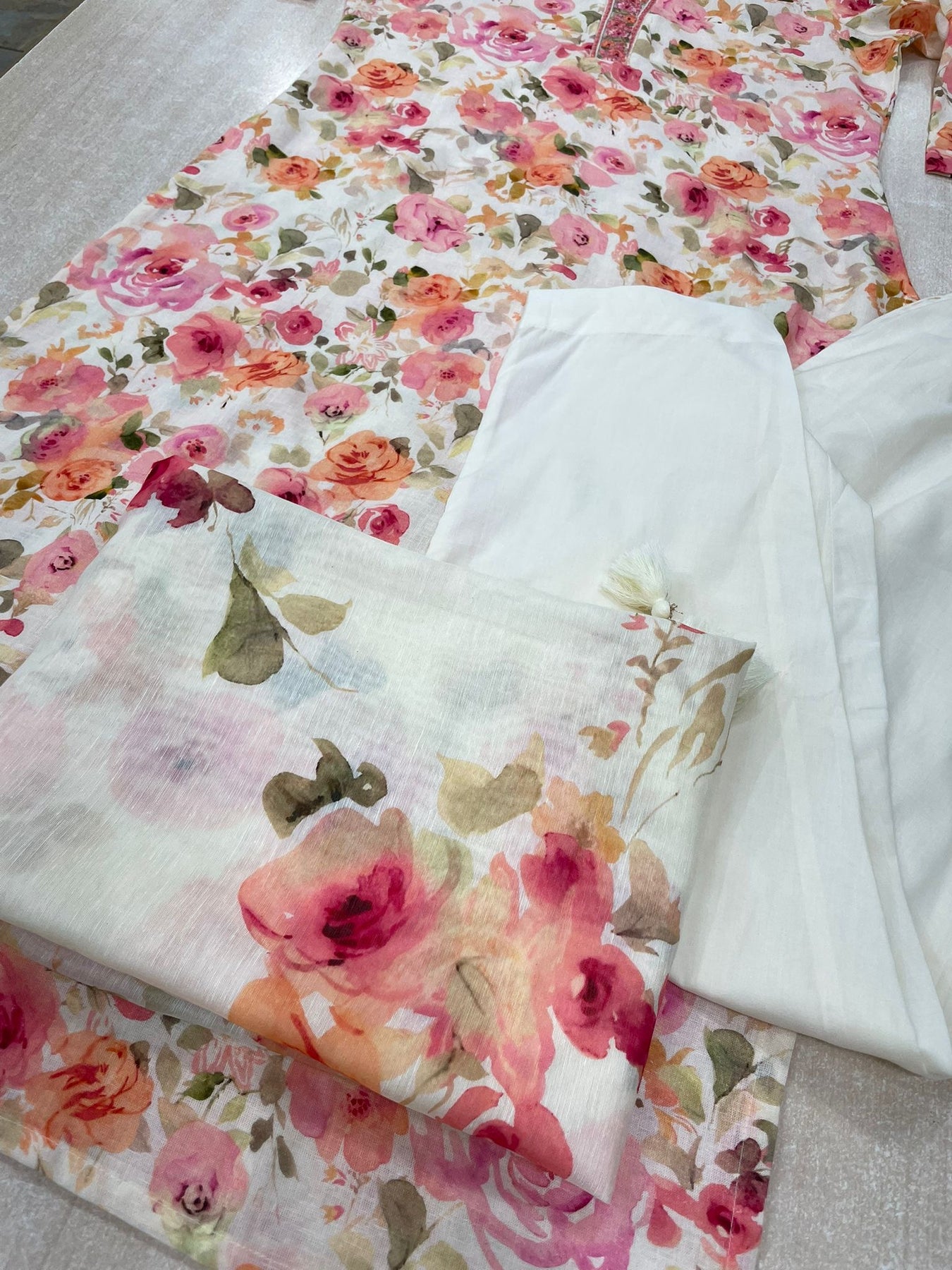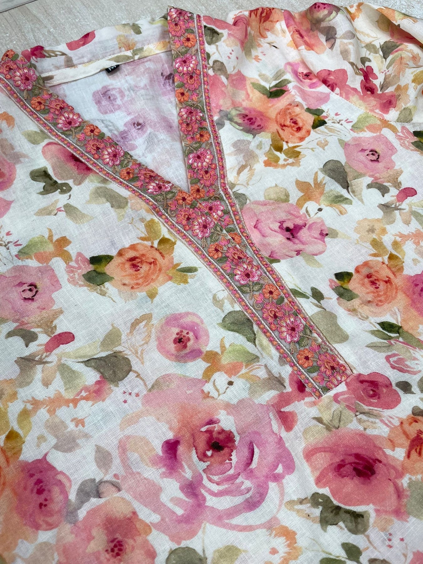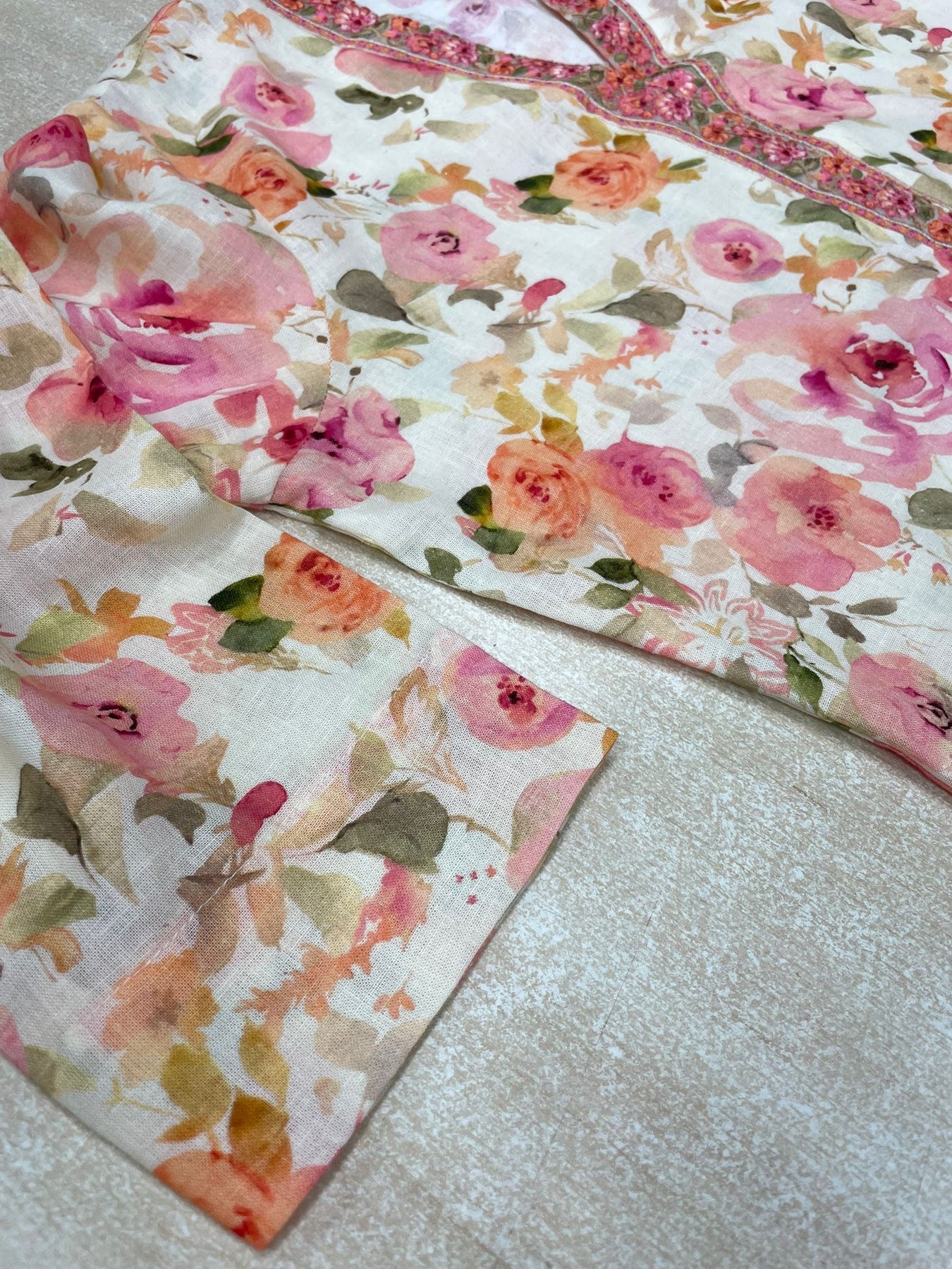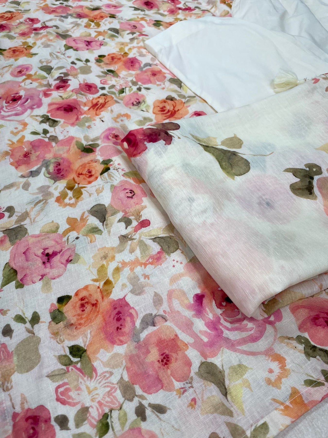 Step into effortless elegance with our beautifully crafted pure linen suits, perfect for both party and casual wear. Each set features a unique floral print design in a single colour, offering timeless style with a modern touch. The fabric feels soft and breathable, very similar to cotton, making it ideal for staying comfortable while looking polished. Whether you're heading to a house party, a casual get-together, or a lightweight event, these suits are your go-to choice for style and ease.