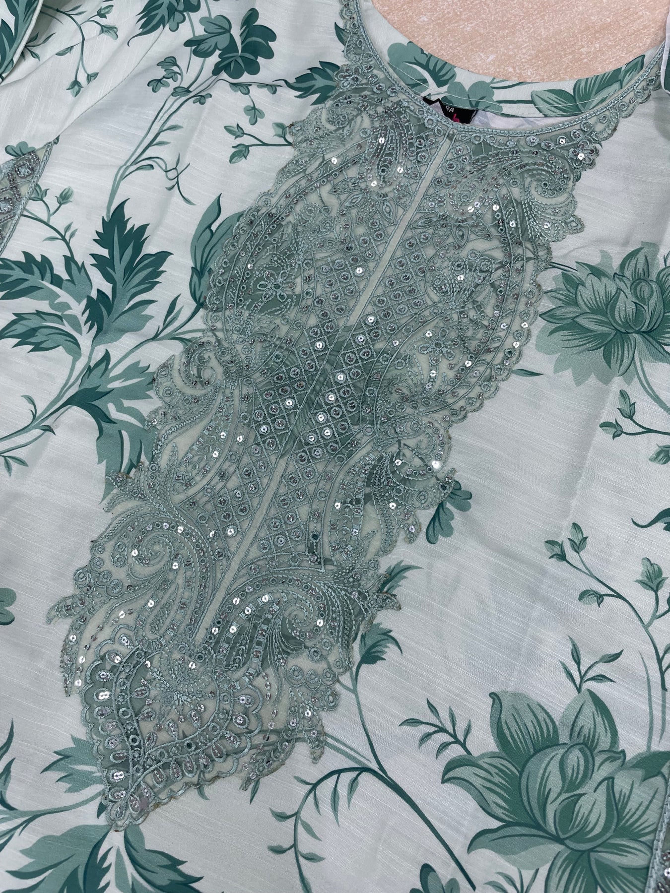 Large - Chest 46" - Waist 46" - Hips 48" - Kameez Length 39" - Sleeves Length 22.5"