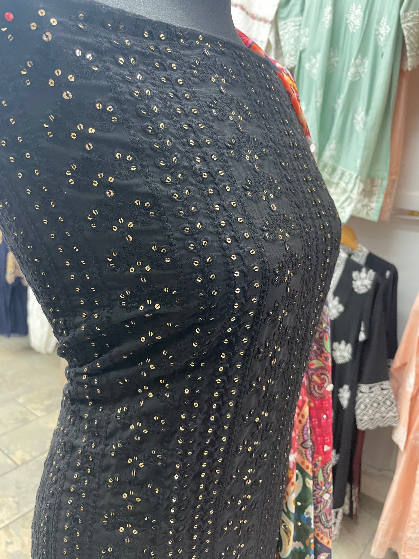Beautiful Georgette top and bottom with black embroidery on the top.