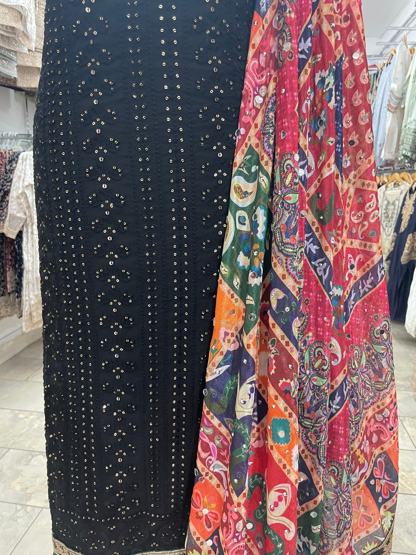 Black Mendhi Suit F - Full Embroidered - Unstitched
