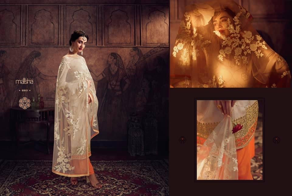You have a net dupatta with embroidery work, chain stitch and crepe shalwar fabric.
