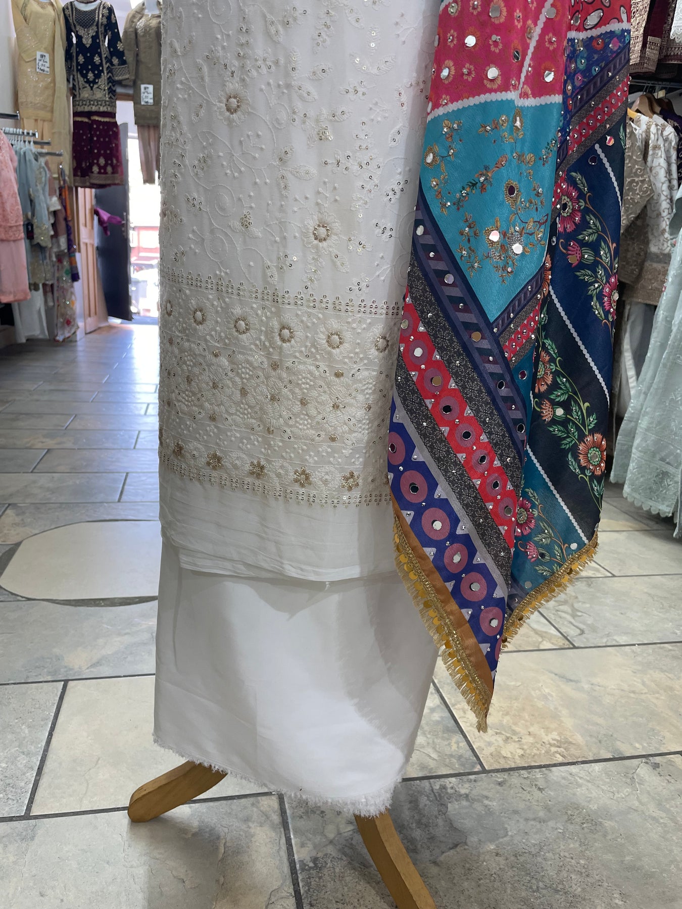 White Mendhi Suit D - Full Embroidered - Unstitched