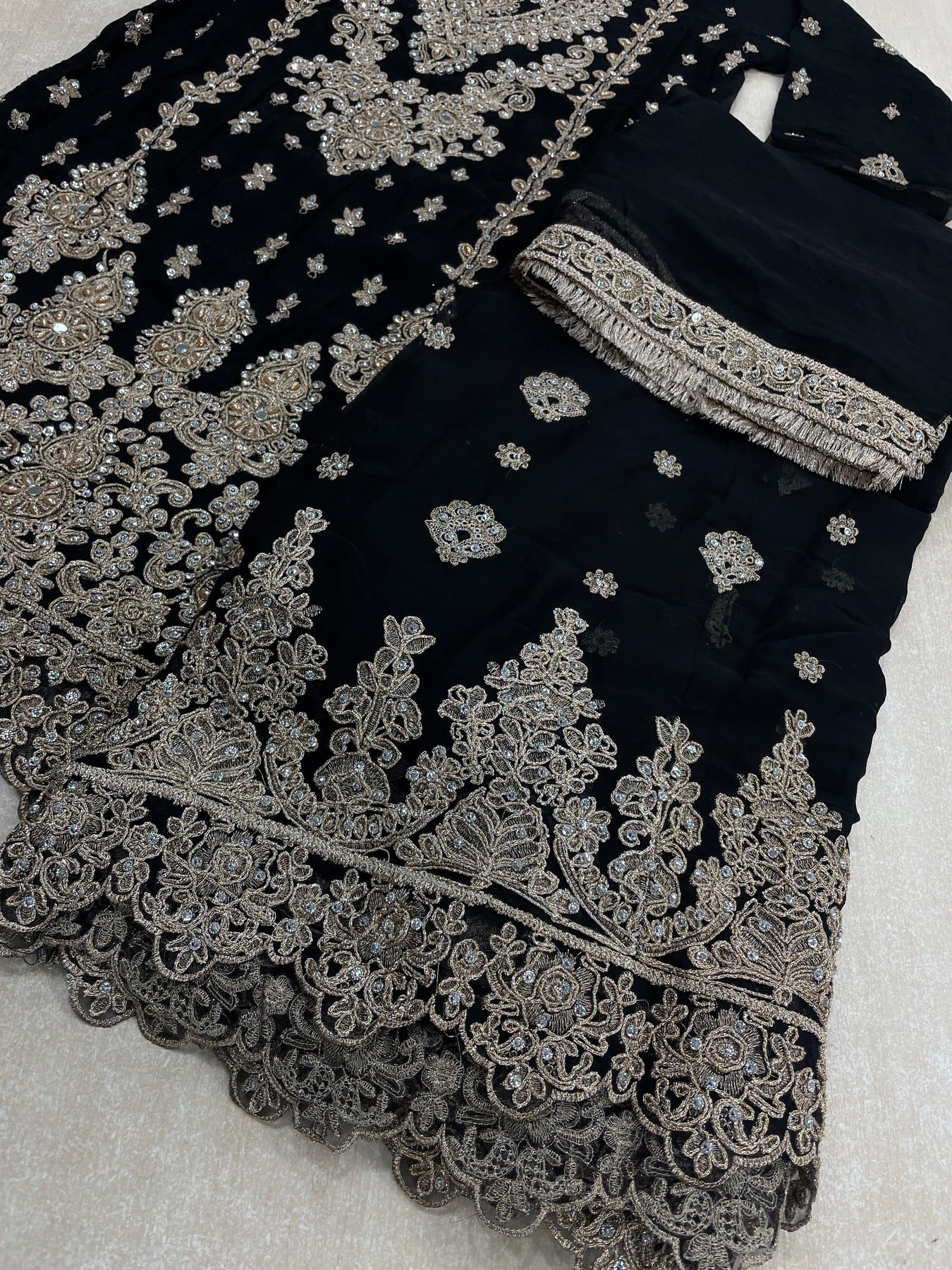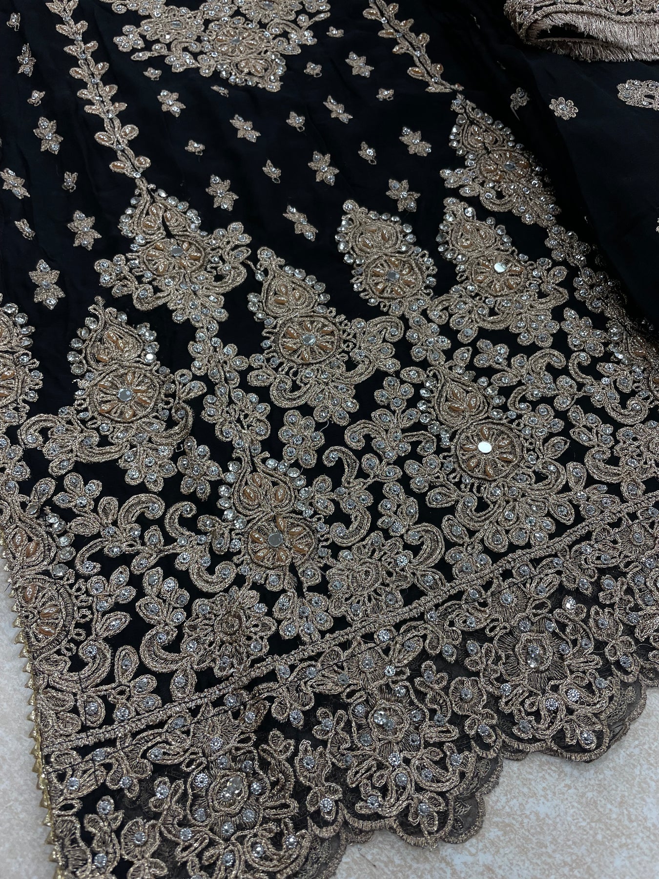 Aisha - Black embroidered Plazo - Rose Gold Embroidered & Gem work - 3Pcs