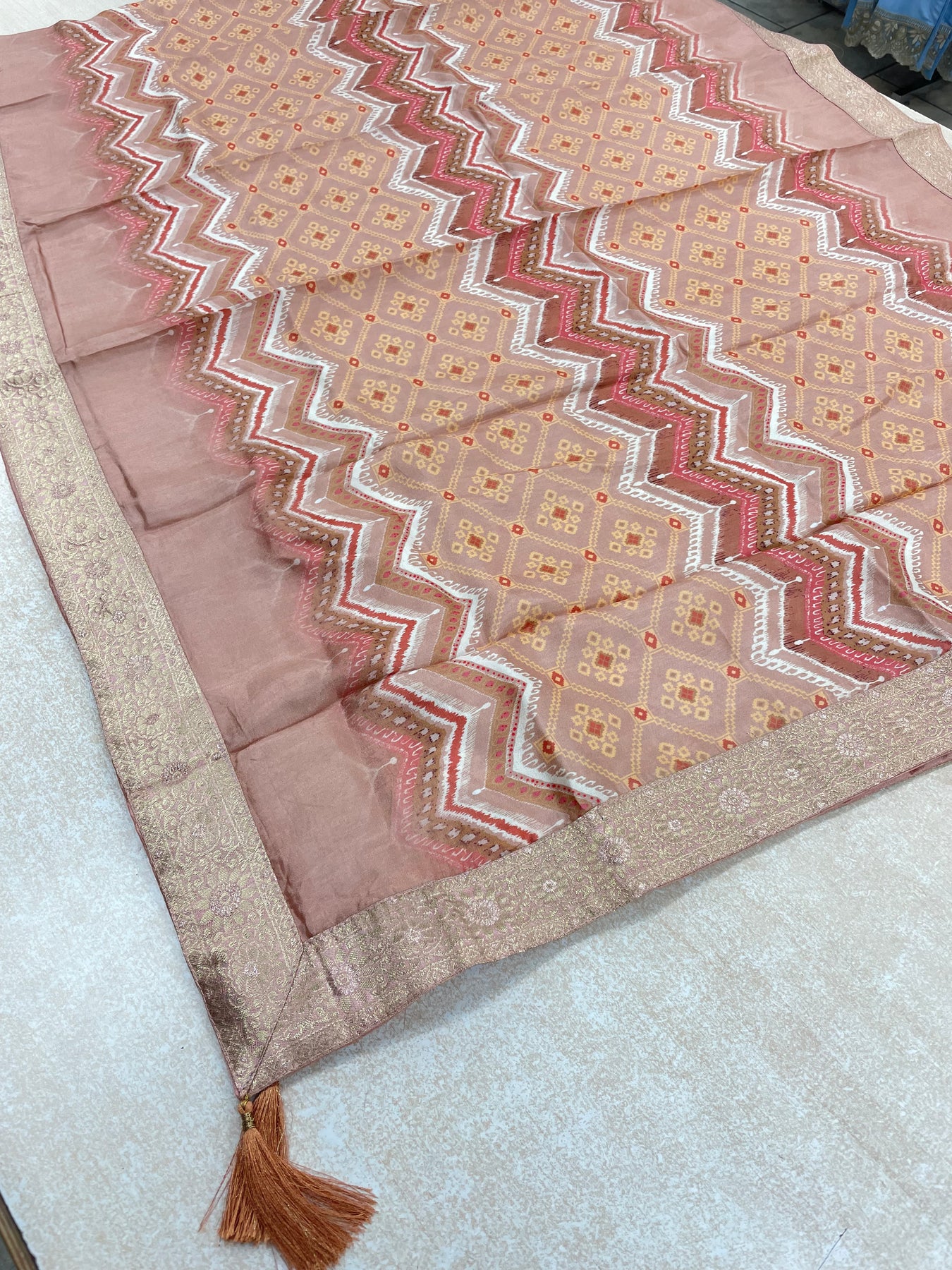 Yasmin - Blush Peach Bhagalpuri Silk Frock with Digital Print Dupatta - 2pcs