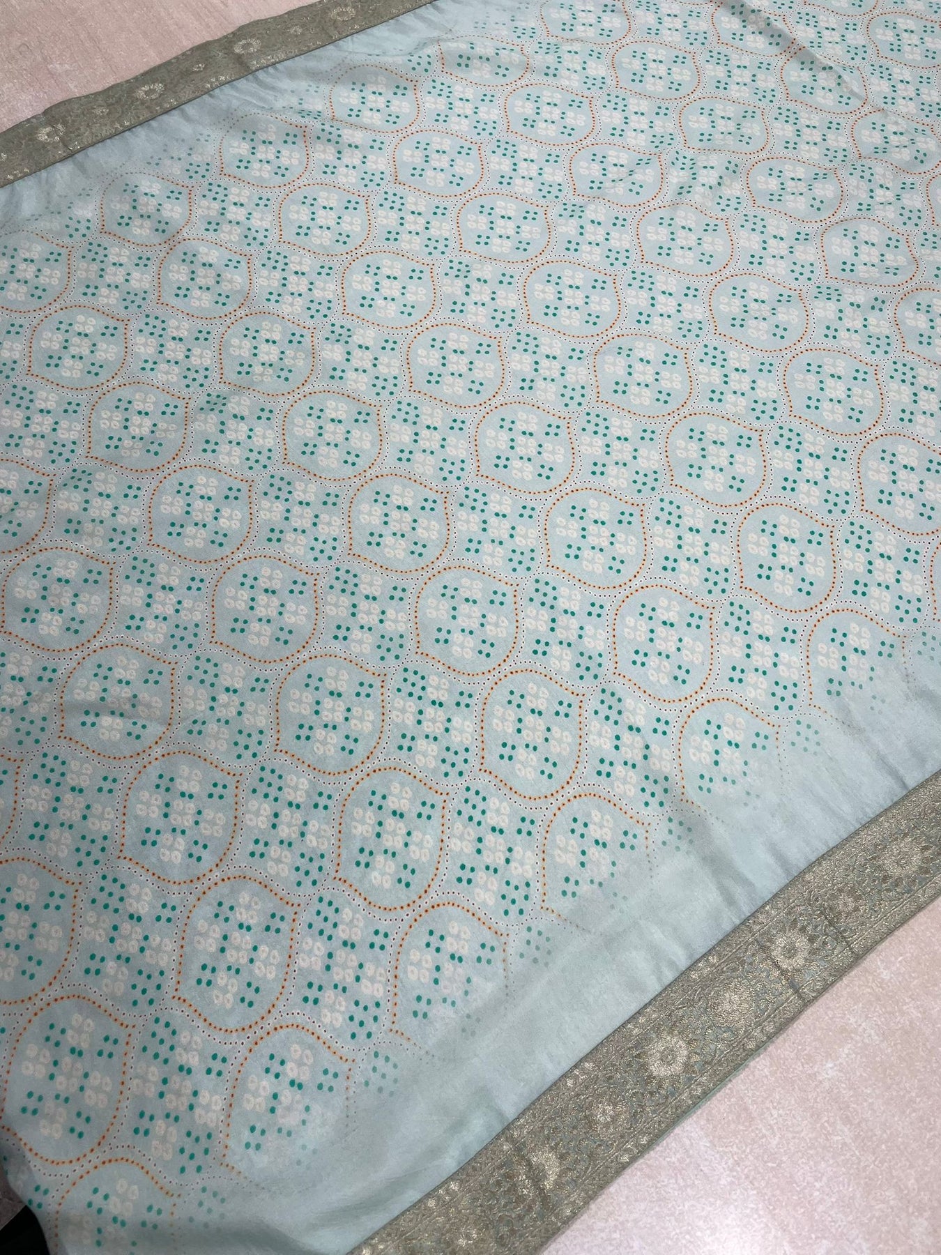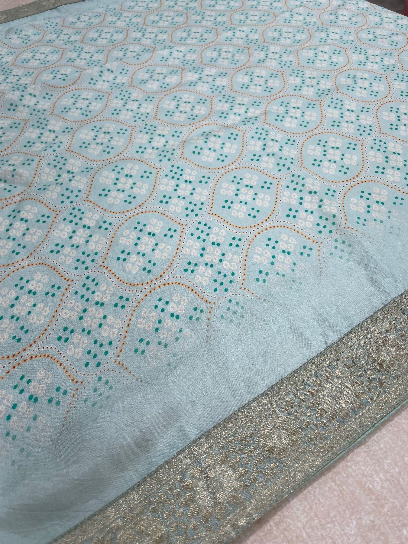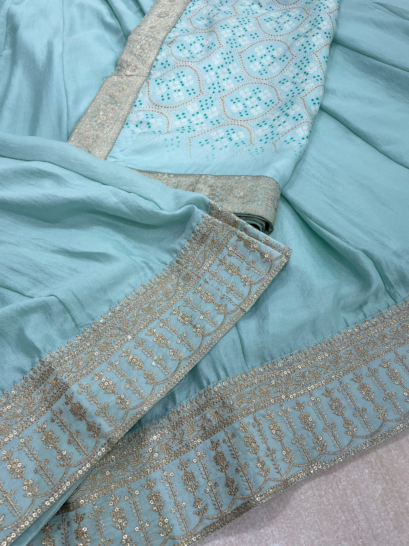 Aasma - Turquoise Bhagalpuri Silk Frock with Digital Print Dupatta - 2pcs