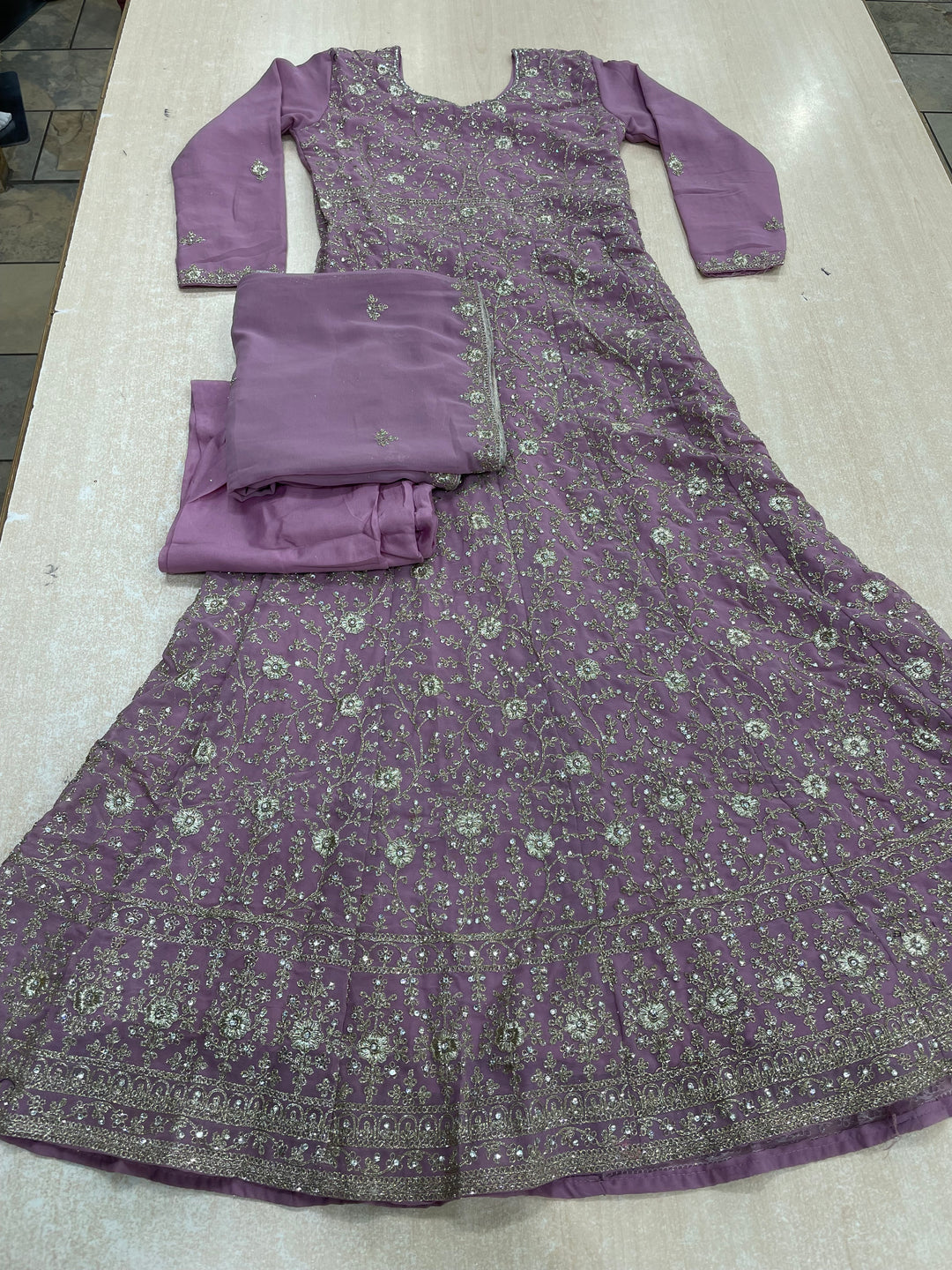 Amani - Lilac Heavy Embroidered Georgette Gown - White Gold Embroidery - 3pcs