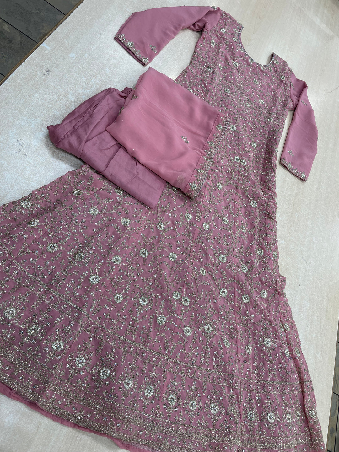 Aisha - Pink embroidered Plazo - Rose Gold Embroidered & Gem work - 3Pcs