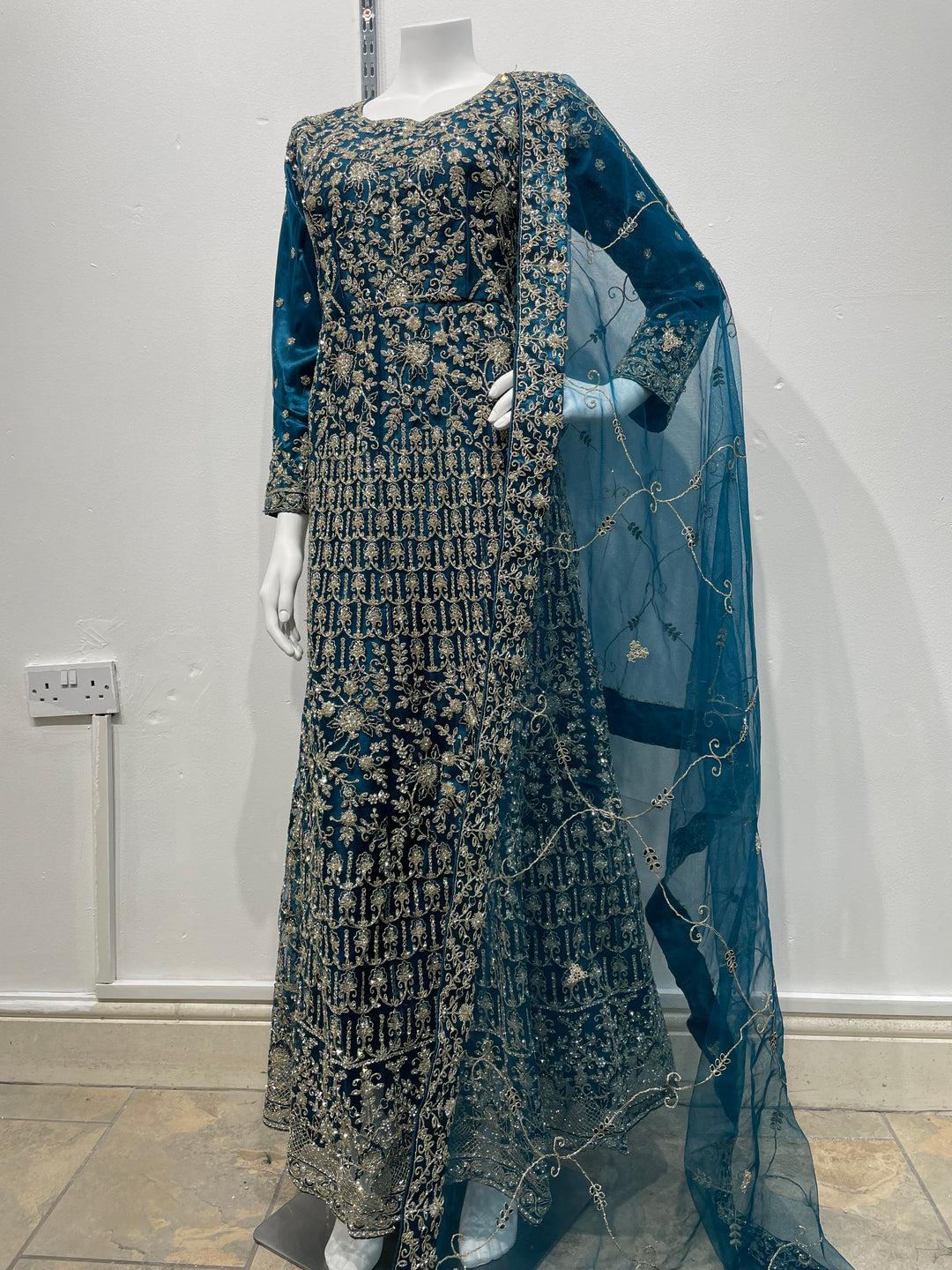 Zoya - Teal Velvet Kameez - Embroidered & Gem work - 3Pcs