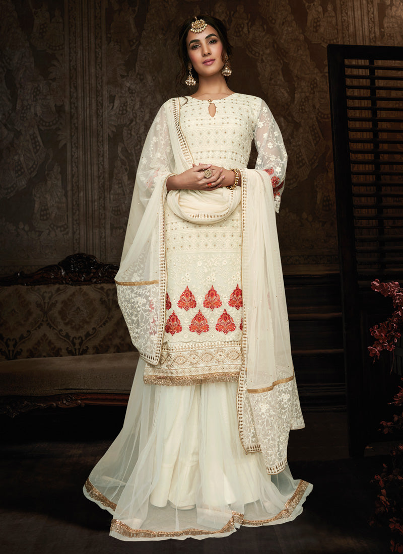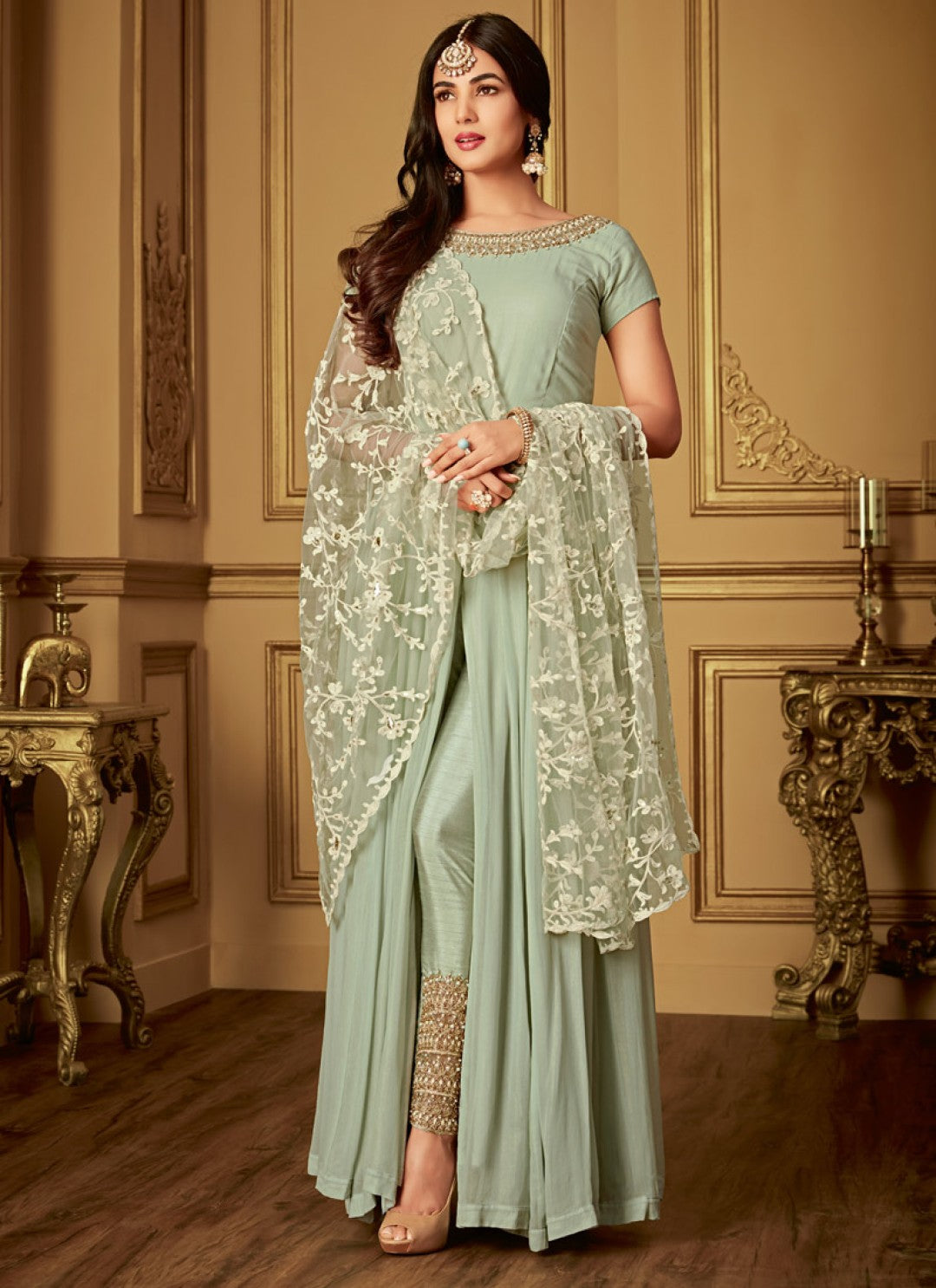 Areesh – Teal Net Embroidered Shalwar Kameez with Satin Trousers – 3 Pcs