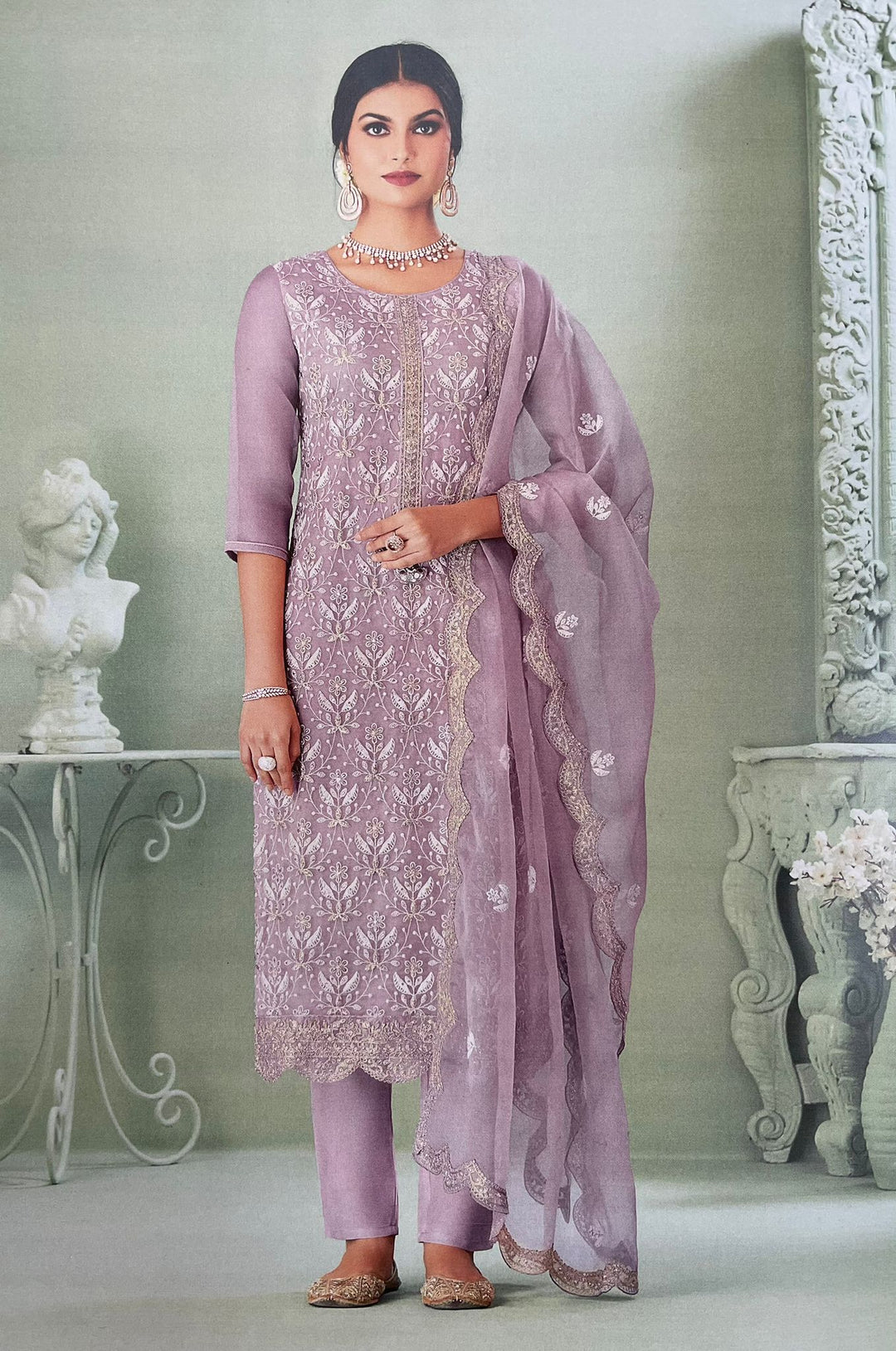 Areesh – Lavender Net Embroidered Shalwar Kameez with Satin Trousers – 3 Pcs