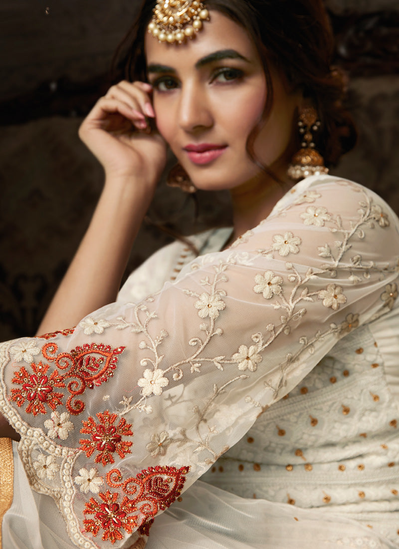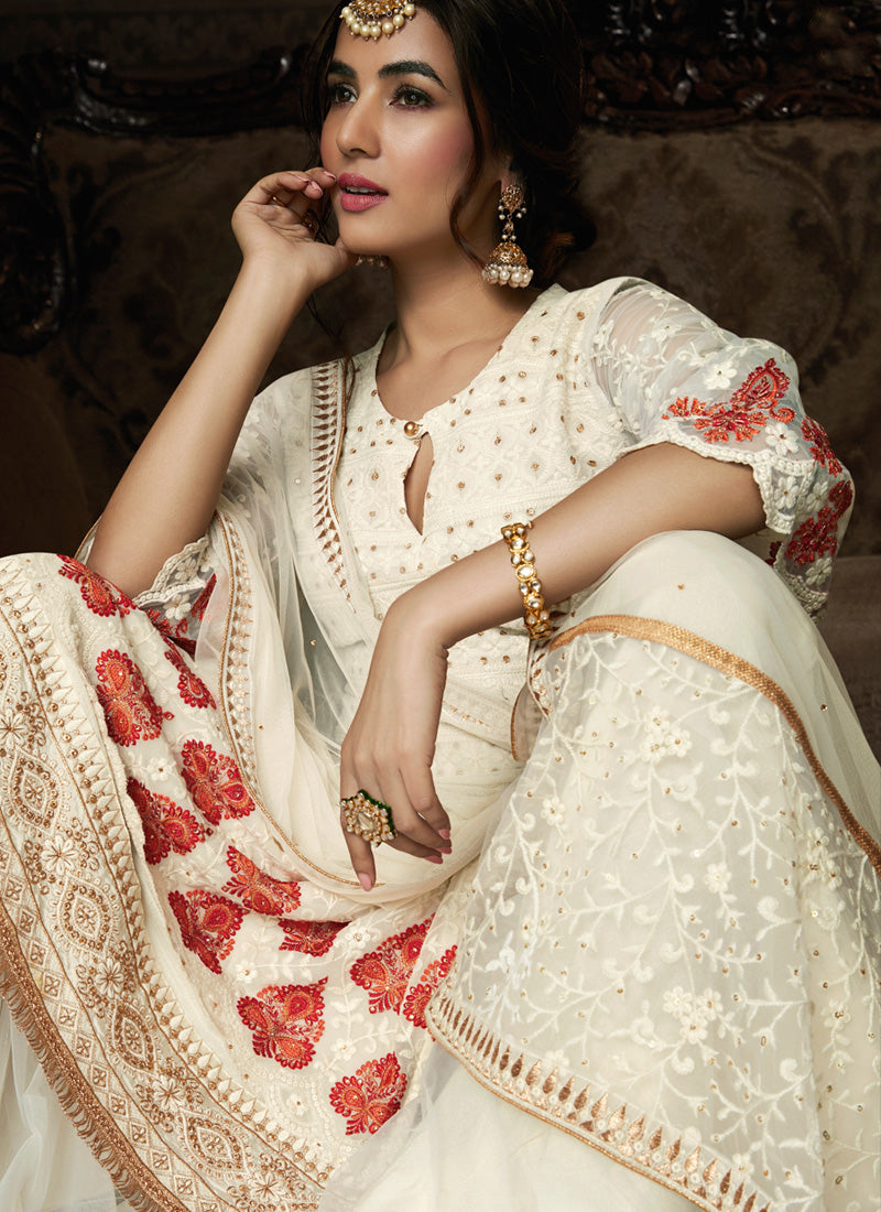 Inayat By Maisha 8604 Off White Georgette Pakistani Palazzo Suit