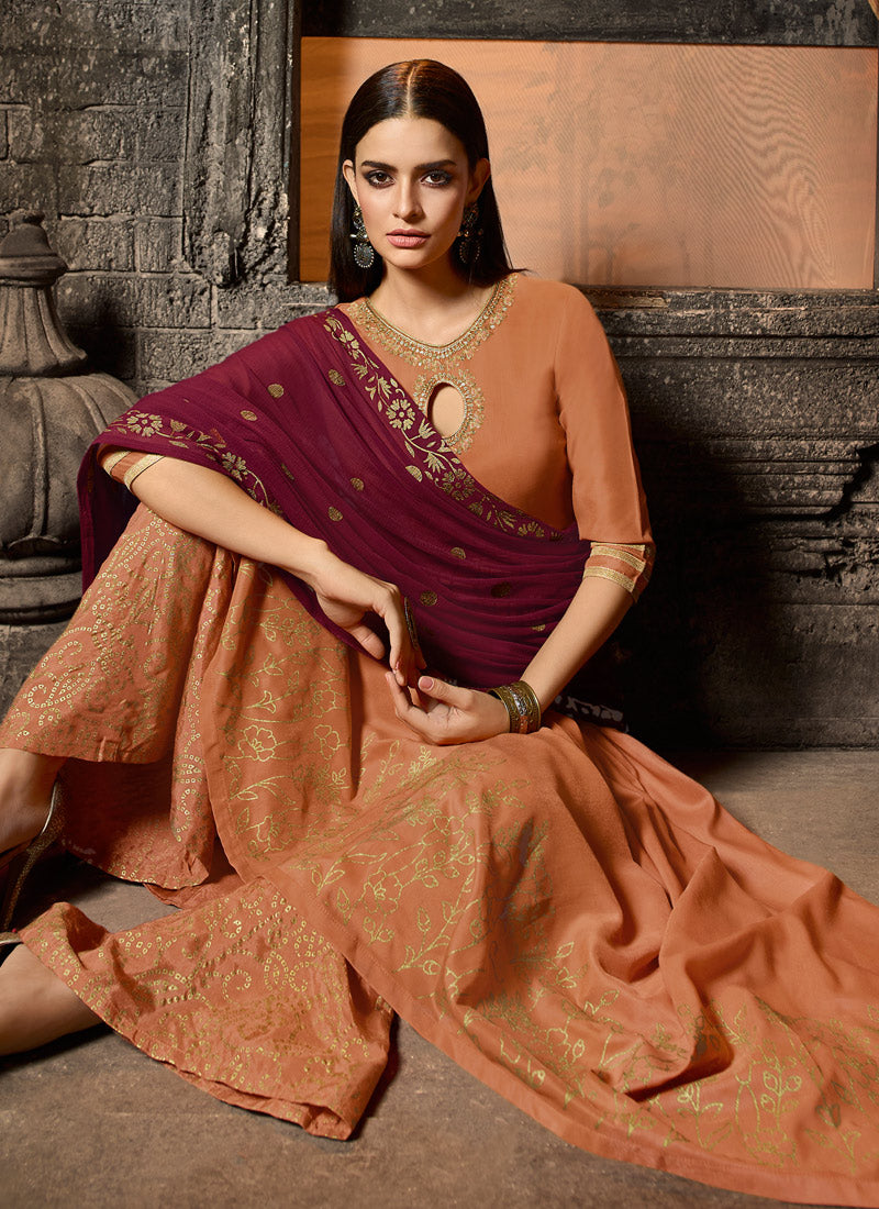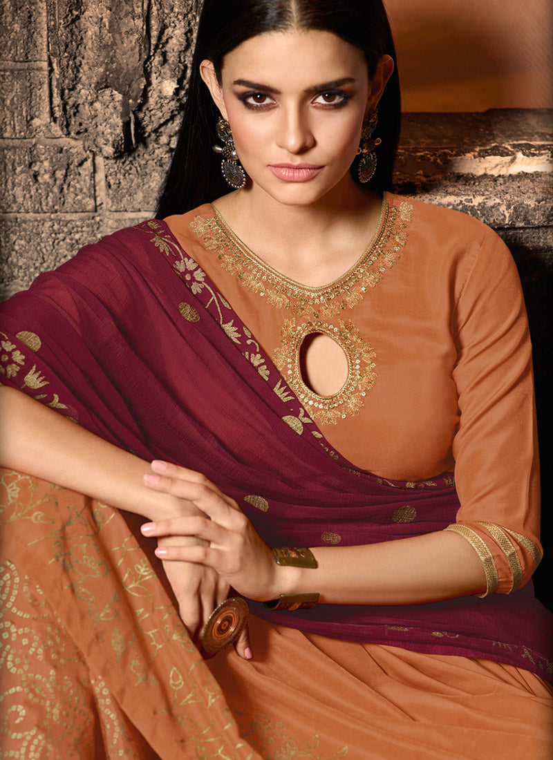 Duppata fabric - Maroon Chiffon