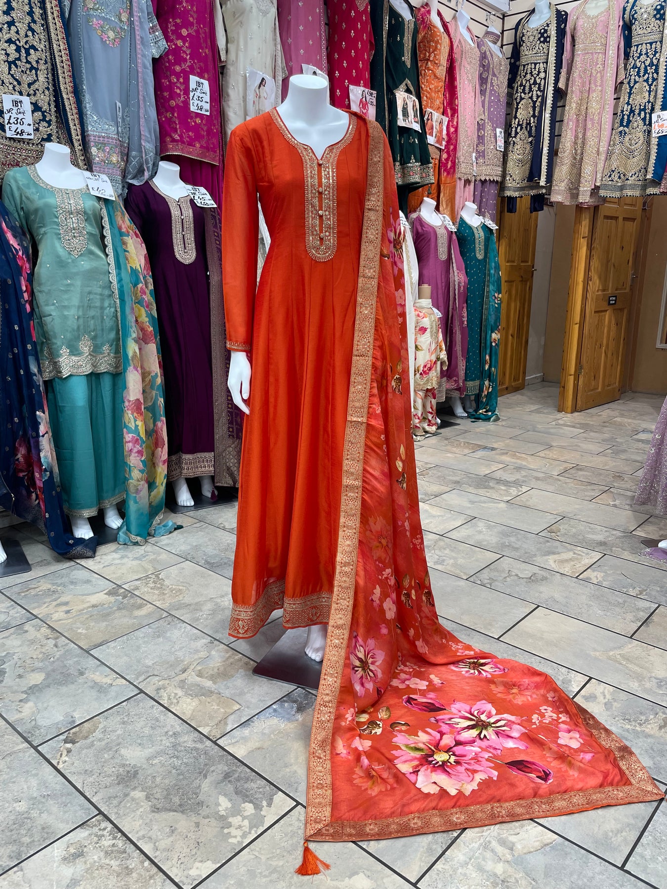 While this set includes just the top and scarf, most of our customers prefer it this way — pairing the Anarkali with their own comfortable leggings or churidars for a personalised fit. Given the full length of the frock, a matching bottom isn't essential, allowing for more freedom and ease in styling.